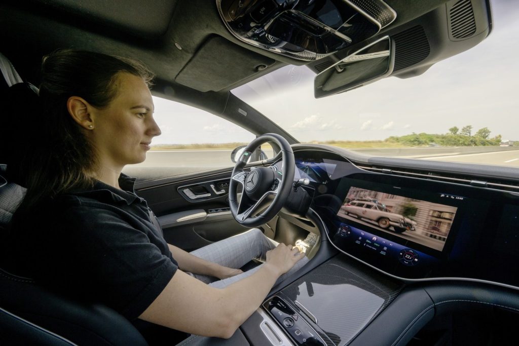 - Επίπεδο 3: Το αυτοκίνητο οδηγεί μόνο του σε ορισμένες συνθήκες (π.χ. αυτοκινητόδρομο), αλλά ο οδηγός πρέπει να αναλάβει αν του ζητηθεί. Παράδειγμα: Mercedes Drive Pilot.