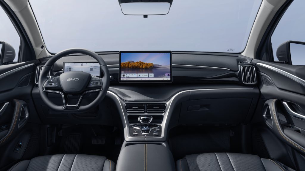 Το ταμπλό ενσωματώνει ψηφιακό πίνακα οργάνων 8,8 ιντσών που εμφανίζει όλες τις βασικές πληροφορίες οδήγησης, καθώς και οθόνη αφής υψηλής ανάλυσης 12,8 ιντσών με το σύστημα infotainment τελευταίας γενιάς της BYD. Το σύστημα υποστηρίζει φωνητικές εντολές «Hi BYD», ενσωματωμένη συνδεσιμότητα με smartphone Apple και Android, και προσφέρει χρήσιμες συντομεύσεις για βασικές λειτουργίες σε μια προσαρμόσιμη διεπαφή. Η θέρμανση και ο εξαερισμός μπορούν να ελεγχθούν εύκολα με κινήσεις τριών δακτύλων: δεξιά–αριστερά για την ταχύτητα του ανεμιστήρα και πάνω–κάτω για τη θερμοκρασία. Το σύστημα περιλαμβάνει δημοφιλείς εφαρμογές μουσικής/streaming και υποστηρίζει ενημερώσεις over-the-air (OTA), επιτρέποντας την προσθήκη νέων λειτουργιών με την πάροδο του χρόνου.