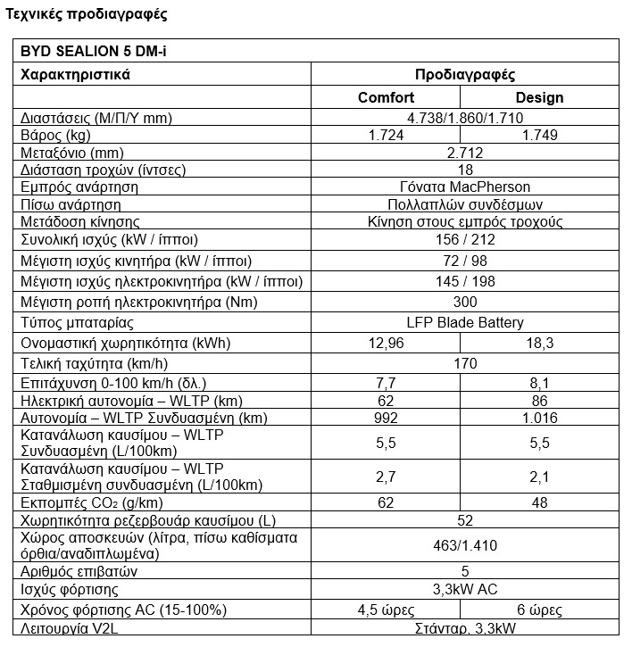 Αναλυτικά τα τεχνικά χαρακτηριστικά του εδώ