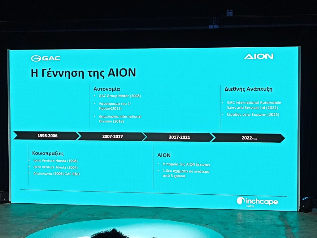 ης GAC AION εκφράζεται μέσα από τη συστηματική επένδυση στην έρευνα και ανάπτυξη (R&D), με έμφαση σε ιδιόκτητες τεχνολογίες μπαταριών που ενισχύουν την ενεργειακή ασφάλεια, την αποδοτικότητα και τη βιωσιμότητα. Στην εγχώρια αγορά της Κίνας καταλαμβάνει σταθερά κορυφαίες θέσεις σε πωλήσεις ηλεκτρικών οχημάτων, επιτυγχάνοντας διαρκώς διψήφιους ρυθμούς ανάπτυξης και επιβεβαιώνοντας την ηγετική της παρουσία στον κλάδο της νέας ενεργειακής κινητικότητας. Στον πυρήνα της εταιρικής της στρατηγικής βρίσκεται η διεθνής εξάπλωση, η οποία ήδη υλοποιείται με διεθνή παρουσία σε Ευρώπη, Μέση Ανατολή και Ασία. Η είσοδός της στην ελληνική αγορά αποτελεί ένα ακόμη αποφασιστικό βήμα στην υλοποίηση αυτού του φιλόδοξου και σαφώς προσανατολισμένου πλάνου.