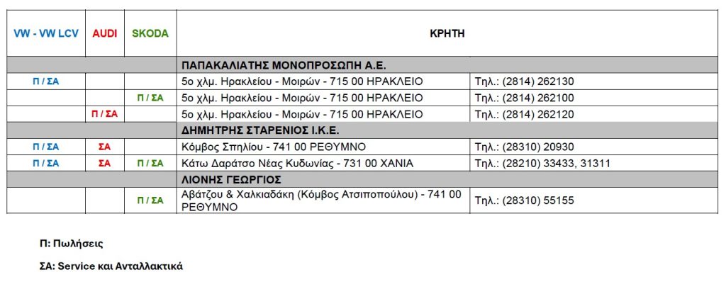 Αναλυτικά τα σημεία πώλησης, service, ανταλλακτικών της Kosmocar στην Κρήτη: