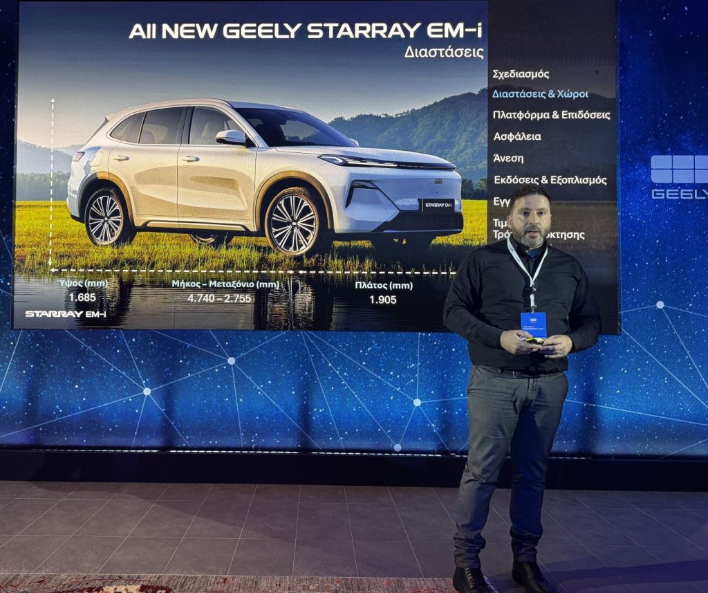 “Είμαστε εδώ για το αστέρι της Geely και πιστεύουμε που πιστεύουμε ότι αλλάζει τα δεδομένα στην κατηγορία των PHEV” είπε χαρακτηριστικά ο Θανάσης Κονιστής, γενικός διευθυντής της GEO Mobility Hellas (επίσημης αντιπροσωπείας Geely και Zeekr στην Ελλάδα), απευθυνόμενους προς τους εκπροσώπους του ειδικού Τύπου που, στο πλαίσιο της δημοσιογραφικής παρουσίασης, είχαν ήδη οδηγήσει το νέο μοντέλο της εταιρίας, Starray EM-I.