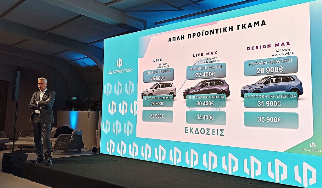 Το νέο C-SUV του κινεζικού brand Leapmotor που διανέμει τα συτοκίνητά του μέσω του Δικτύου της Italian Motion, το B10, ήρθε στην Ελλάδα. Κατά τη δημοσιογραφική στατική παρουσίαση του μοντέλου στο Anassa City Events στην Αθήνα, έγινε γνωστή και η λογική τιμή εκκίνησης στα 25.900€ με πολύ καλό επίπεδο εξοπλισμού.